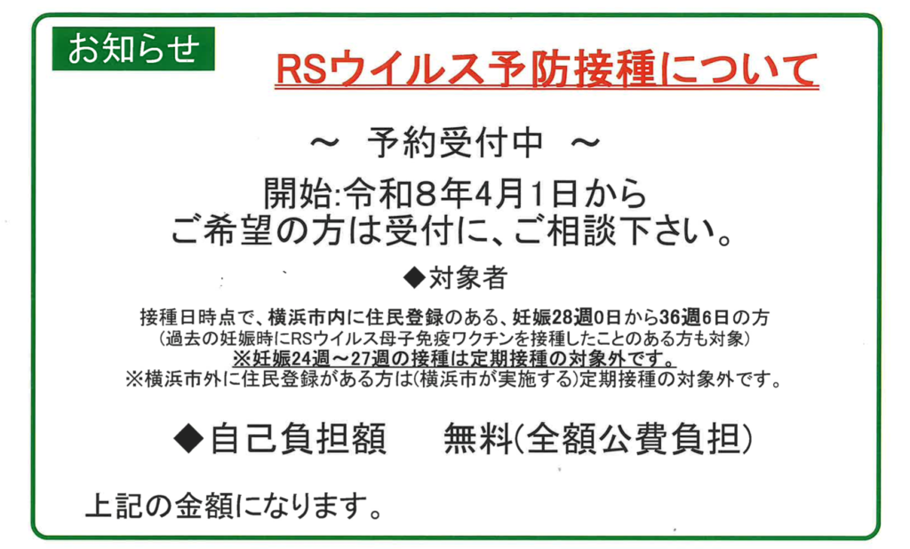 RSウイルス予防接種について-予約受付中-